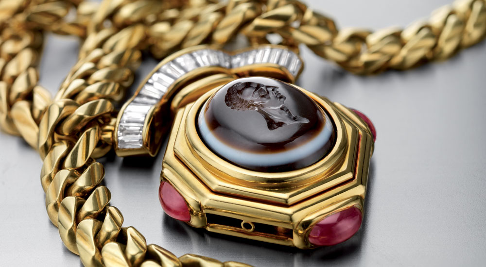 The Monete collection, introduced in the 1960s, is set with ancient Roman and Greek coins. “Incorporating forms of currency into the designs speaks not only to Bulgari’s heritage, but also its experimentation with materials,” adds Boscaini, the head of the brand’s archives in Rome.